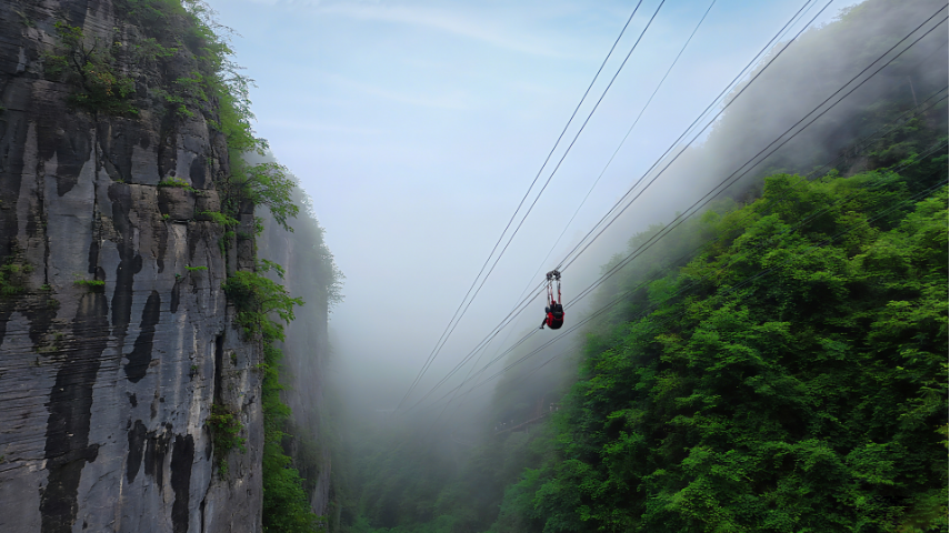 外骨骼助力设备成为中老年游客的“登山神器”,轻巧的机械支架轻松化解爬坡费力的难题;回音谷滑索上,尖叫声与呼啸的山风交织,游客在300米高空瞬间穿越峡谷,体验失重的刺激与速度的激情。