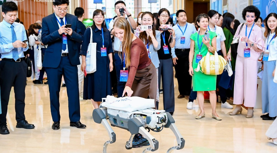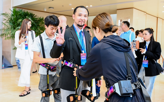 鄂旅股份酷驰科技的工作人员在现场详细讲解外骨骼机器人的功能,并操作展示了机器狗的负重运输和巡逻警报等文旅场景应用。其中,外骨骼机器人助力登山更是受到众多与会嘉宾的关注,纷纷试穿体验。
