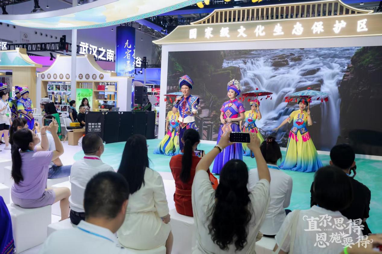 展会期间,土家族民俗表演接连登场,土家特色舞蹈、民歌演唱、西兰卡普编织展示等,让观众近距离领略土家文化的独特韵味。舞者们身着绚丽民族服饰,舞步轻快、歌声嘹亮,赢得现场阵阵掌声。