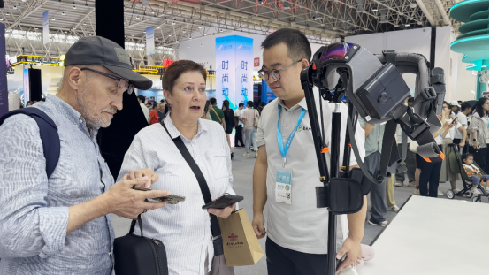与此同时,另一个“明星智能终端”——外骨骼机器人同样人气满满,大量嘉宾前来展台询问并试穿体验,工作人员耐心协助穿戴并讲解操作要领,让参展观众亲身感受科技为旅游带来的革新变化。外骨骼机器人自2025年初在恩施大峡谷试运营以来,已服务近万名游客,助力大家畅享自然奇观,成为景区“科技适老化”和“登山友好型”服务的典范。