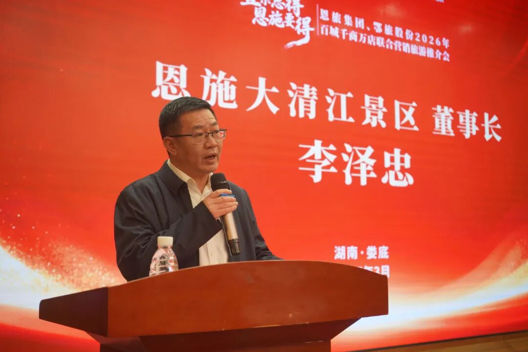 恩施大清江景区董事长李泽忠在致辞中表示,娄底地处湖南地理几何中心,文旅市场潜力巨大,与恩施在生态观光、民俗体验、康养度假等领域互补性强。他期待以此次推介会为契机,推动双方在产品开发、品牌共建等方面实现更深层次合作,让更多娄底市民走进恩施、畅游清江。湖南旅行社代表在发言中高度评价恩施旅游资源的稀缺性与市场吸引力。他指出,恩施大峡谷的雄奇、大清江的秀美,与湖南游客对高品质短途游、深度体验游的需求高度契合。未来将联合当地同业,加快推出定制化旅游产品,推动两地文旅市场互联互通、互利共赢。