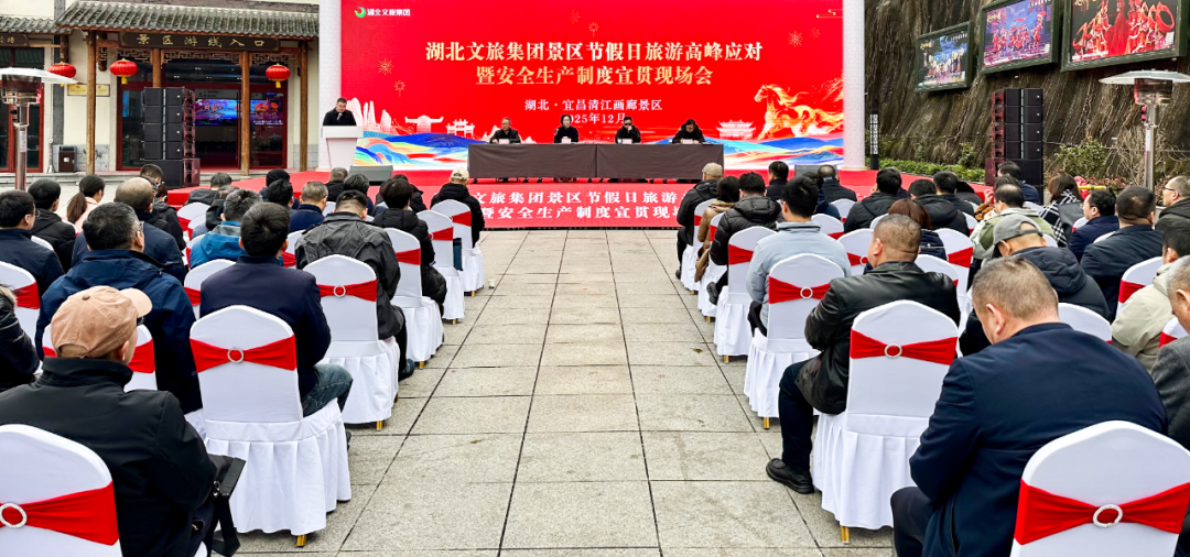 12月24日,中文av 在宜昌清江画廊景区露天召开景区节假日旅游高峰应对暨安全生产制度宣贯现场会。集团党委副书记、总经理李丽出席会议并讲话,党委副书记罗迈、党委委员、副总经理罗钦出席会议,党委委员、副总经理吴传彪主持会议。