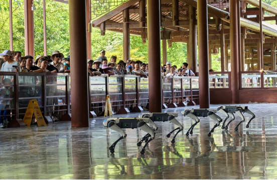 利用科技赋能,构建旅游新范式。紧跟科技前沿步伐,积极引入智能化设备,为游客带来更安全、高效、有趣的旅游体验。在安全保障方面,创新利用四足机器人巡检技术,部署山猫M20、绝影X30等型号的四足机器人执行智能巡检任务,极大地提升巡检覆盖范围,为游客的安全保驾护航。