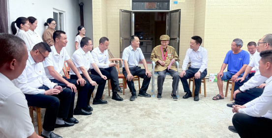 在随县新街镇河源店村抗战老战士家中,公司党员们为96岁的李明海老战士送上鲜花、米面油等慰问品,关切询问其生活与健康状况;认真聆听他参加新四军、参战淮海战役、渡江战役、抗美援朝等峥嵘往事,接受了一堂微党课。