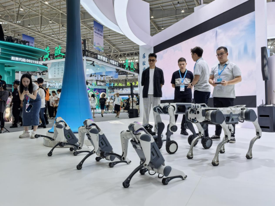 智能机器狗团队成为展区明星,它们不仅能够进行舞蹈表演,这些搭载AI算法的机器狗具备行李驮运、环境清洁能力,并通过红外感知与声光预警系统执行夜间巡逻等景区运营任务。展会现场,机器狗的互动表演吸引了大量观众驻足观看。与会嘉宾纷纷拿出手机记录这些智能机器人为文博会带来的科技魅力,亲身体验科技与文旅融合的创新成果。