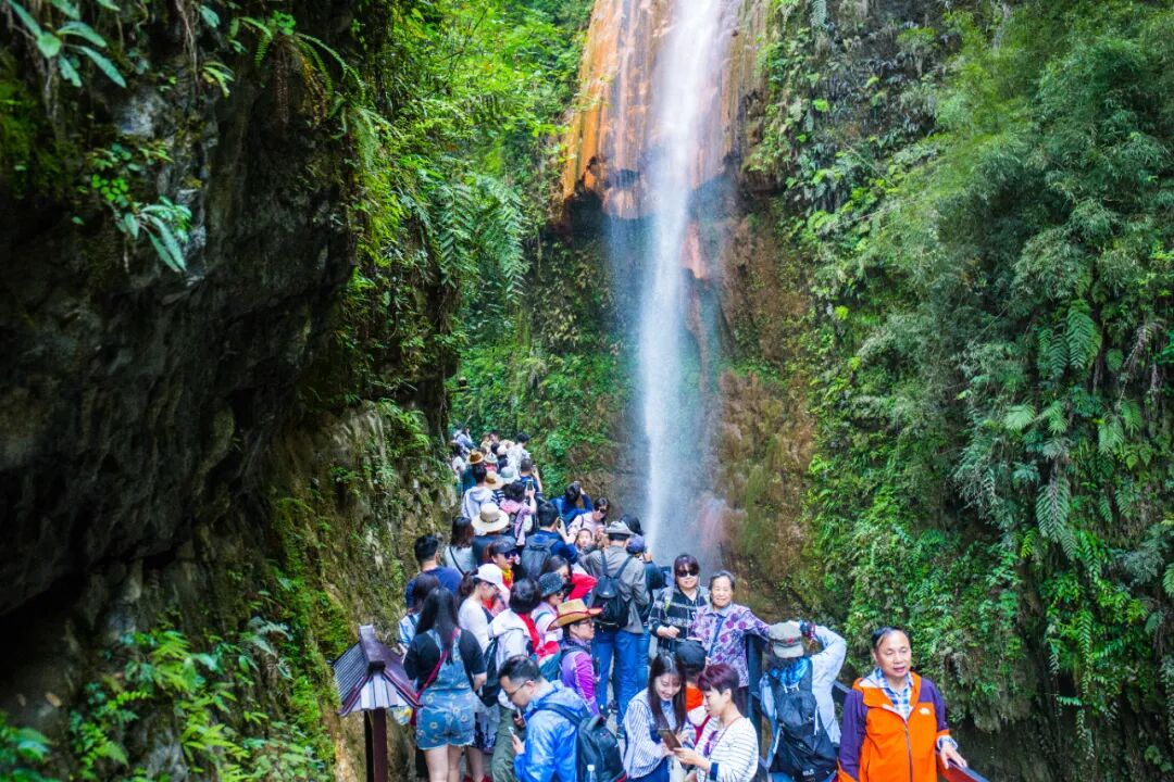 唐崖河·黄金洞景区精心策划"清风殿·彩绘山河"系列主题活动,将国庆元素与自然景观融合,吸引数千名游客参与,在长卷上描绘对祖国的祝福,游客体验持续优化。