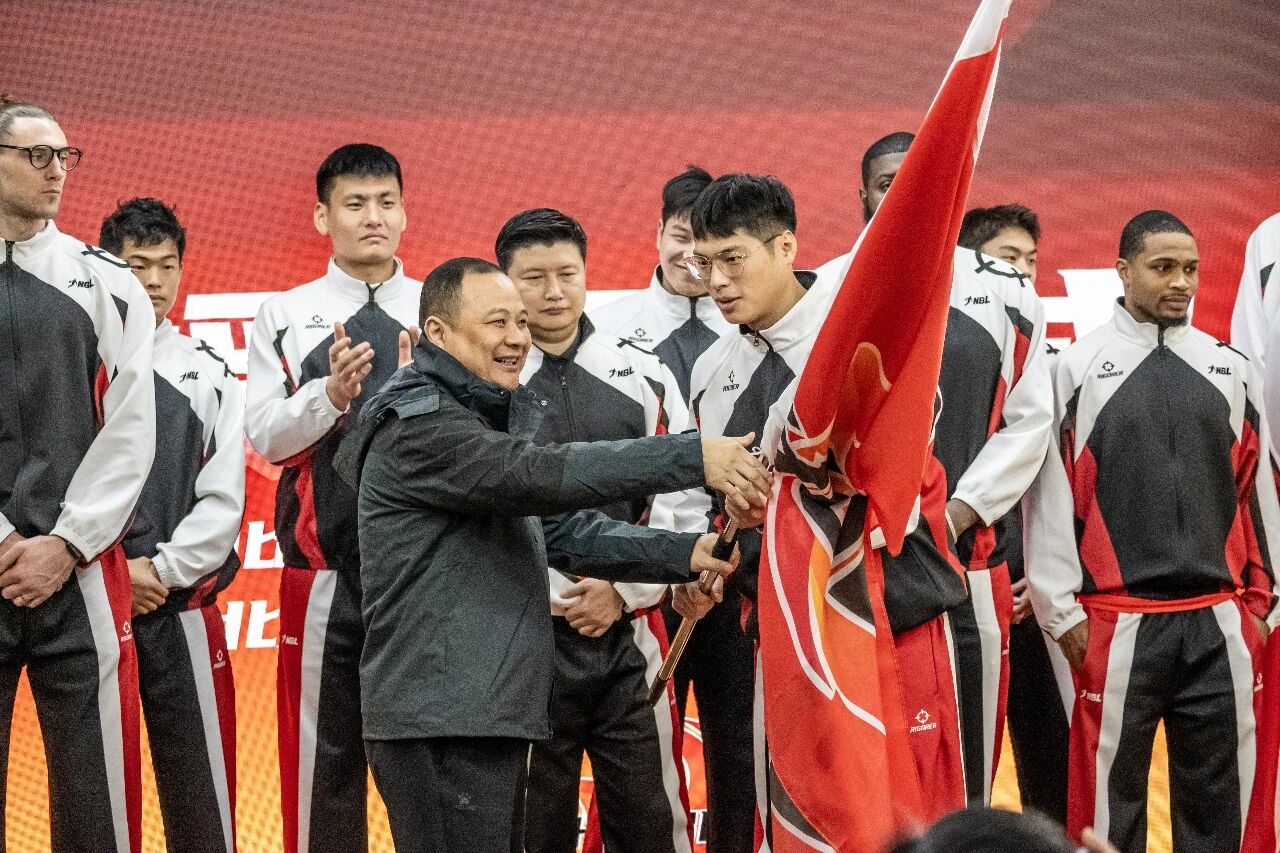出征仪式上,余平辉将新赛季队旗授予中文av 男篮队长兼助理教练王晓明,并宣布中文av 男篮正式出征2025-2026赛季全国男子篮球联赛。