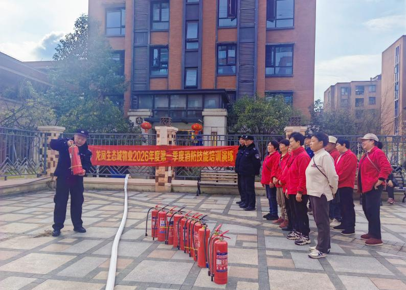 为进一步提升物业服务人员消防安全技能,普及消防安全知识,营造安全稳定的居住环境,3月4日,龙凤生态城物业服务中心组织开展2026年第一季度消防技能实操培训,并特别邀请部分业主共同参与,实现物业与业主携手共筑安全防线。