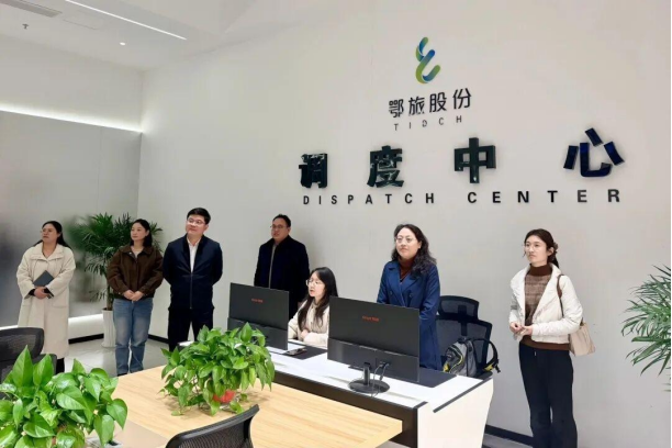 余意峰一行参观了鄂旅股份智慧景交调度中心,详细了解景区交通智能化调度模式,观看了科技产品展示,直观感受鄂旅股份在“科技+文旅”领域的创新实践。