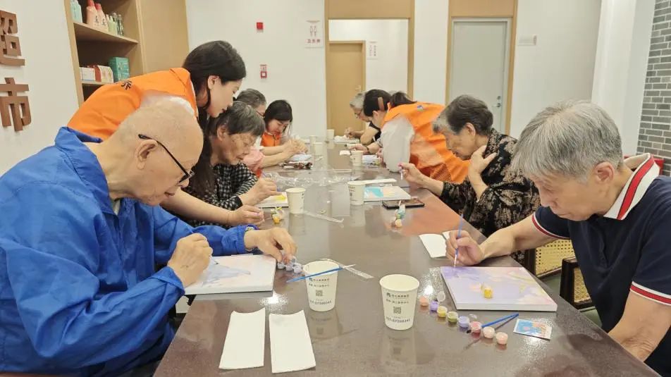 “颐养尖兵”先锋队成员陪伴老人绘画