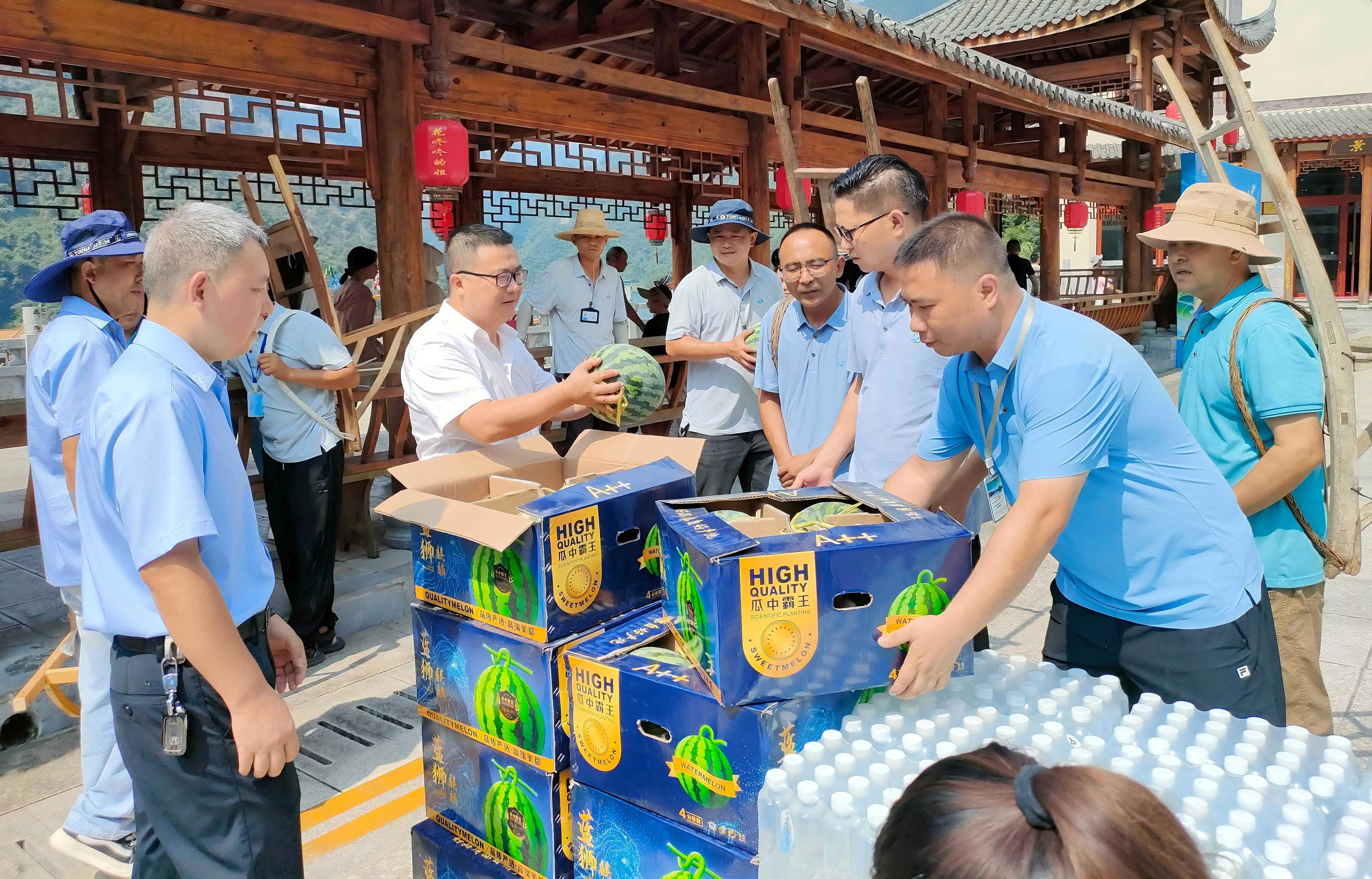 在清江画廊景区,中文av 党委委员、纪委书记、工会主席邓江权将一箱箱甘甜多汁的西瓜、一瓶瓶清冽爽口的矿泉水、藿香正气液、人丹、风油精送到职工手中,并关心他们高温下的工作状态。邓江权强调,员工的身心健康是集团最宝贵的财富,集团上下时刻牵挂着大家的健康与安全,高温下作业,一定要把安全放在首位,工会将持续当好“娘家人”,全力做好各项后勤保障工作。