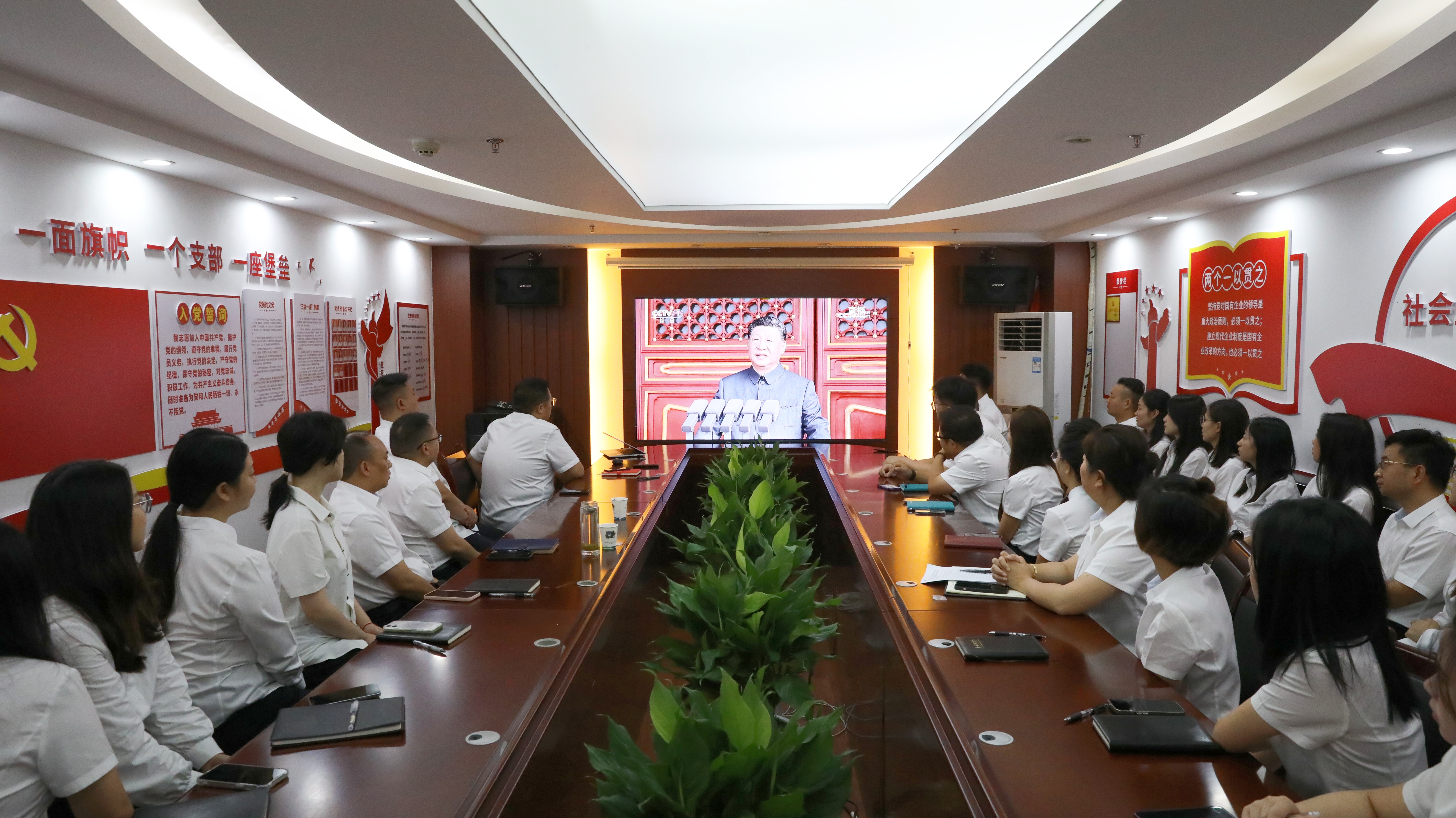 全体干部职工通过直播观看了整齐划一的徒步方阵、彰显国威的装备方阵等阅兵环节,沉浸式感受国威军威,领略祖国的强大与荣耀。