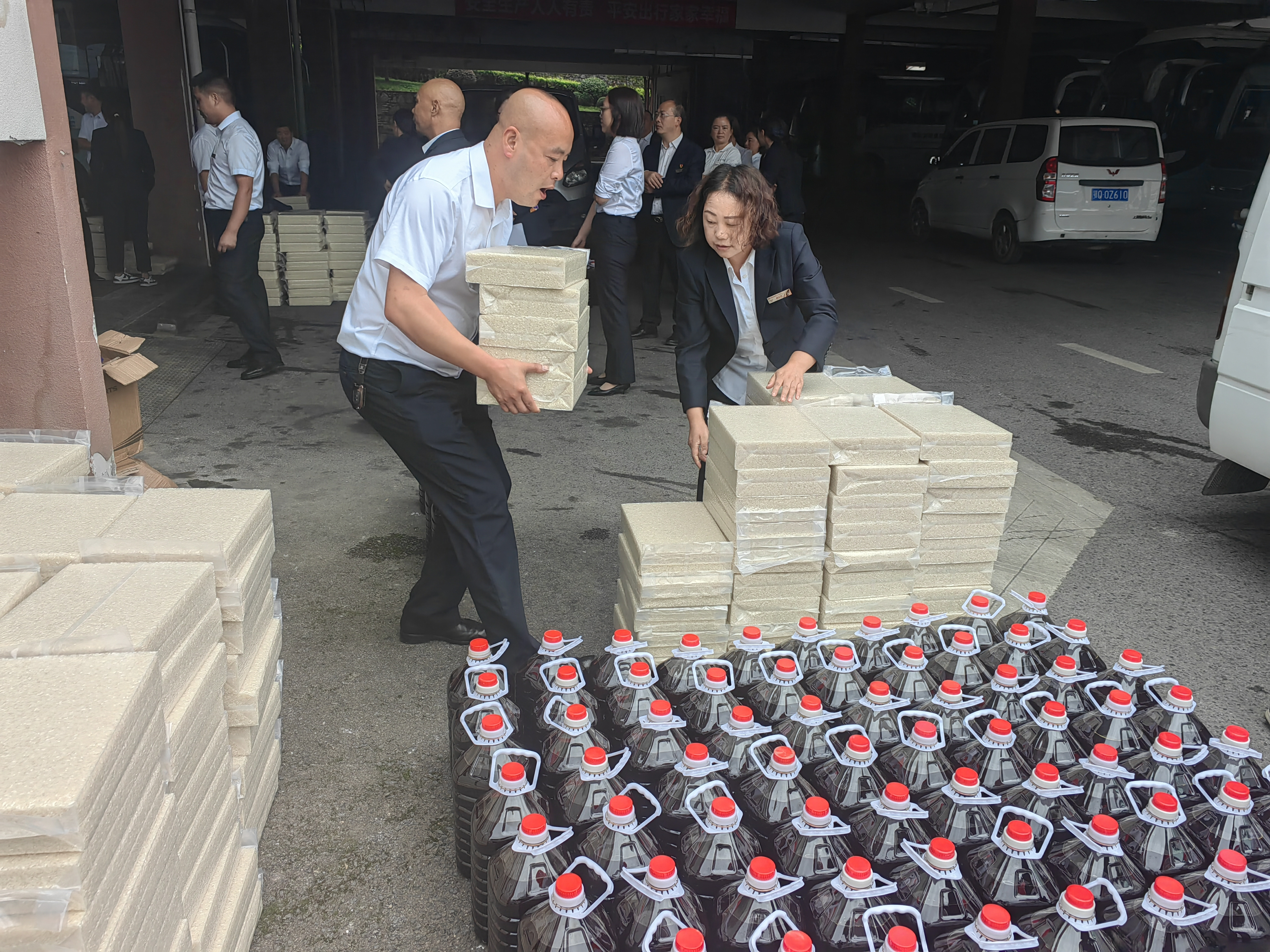 在国庆与中秋双节即将来临之际,一辆满载着优质大米和菜籽油的货车缓缓从干堰村驶出,顺利抵达恩旅集团大峡谷景区。这批农产品不仅代表着村民辛勤劳动的丰收成果,更承载着恩旅集团深深的帮扶情谊。