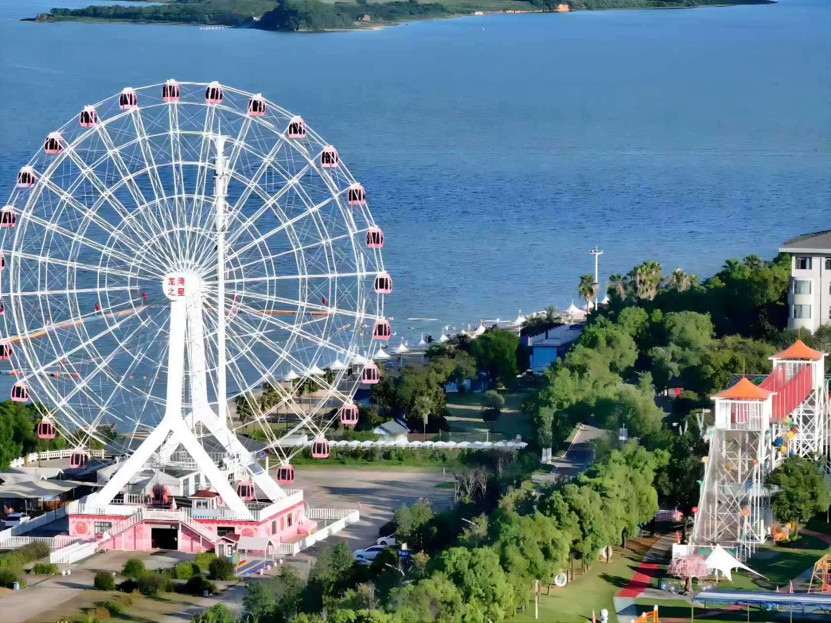 龙湾景区距武汉主城区仅30分钟车程,区位优势显著。项目占地1000余亩,三面环湖,风景旖旎,业态丰富,可同时接待上万游客。景区拥有国内规模最大的滨湖沙滩浴场,配套完备,拥有164间豪华客房的星级度假酒店,8栋独体花园别墅,2套观湖高端民宿,可同时容纳千人参会的会议中心及特色餐饮、休闲等多元业态,可全面满足旅游度假、商务会议、宴会庆典、研学康养等复合型需求。